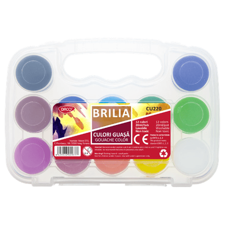 Acuarele in borcane din plastic, cu capac, Daco Brilia cu 12 culori