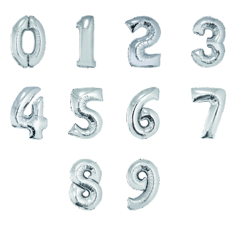 Balon folie cifra 0 – 9 85 cm Argintiu