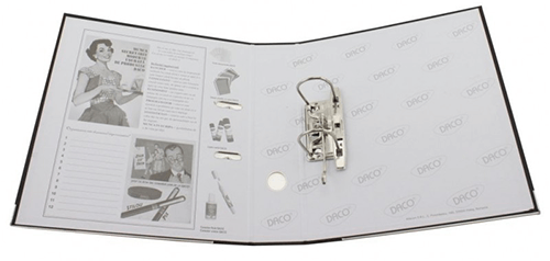 Biblioraft plastifiat ingust Daco bordo, latime 5 cm, mecanism de calitate cu opritor, colturi metalice