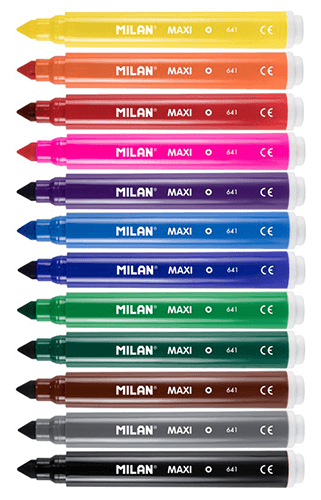 Carioci groase Milan Maxi cu 12 culori pe baza de apa ideale pentru colorarea suprafetelor mari