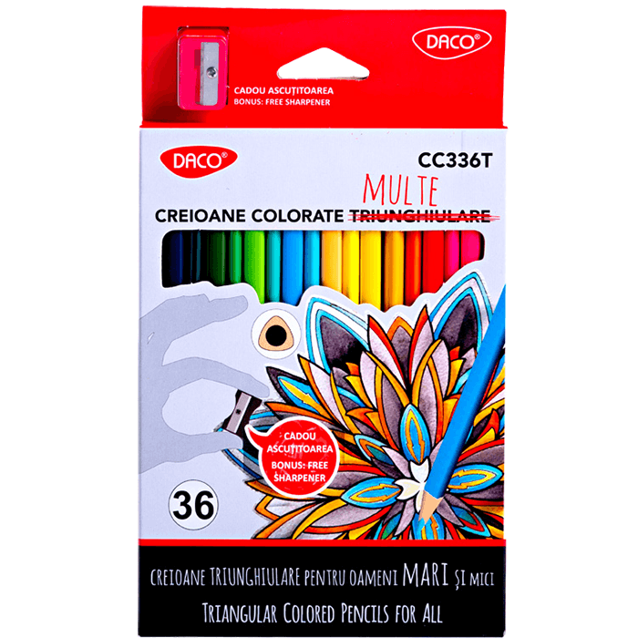 Culorile au corp triunghiular din lemn de calitate ceea ce asigura o ascutire perfecta