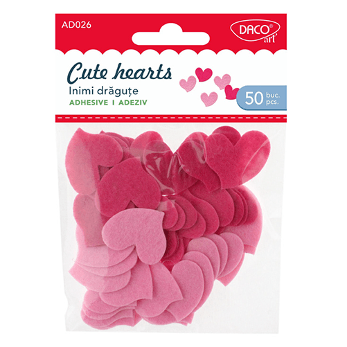 Setul contine 50 de inimi autoadezive cu dimensiunea de 3 cm