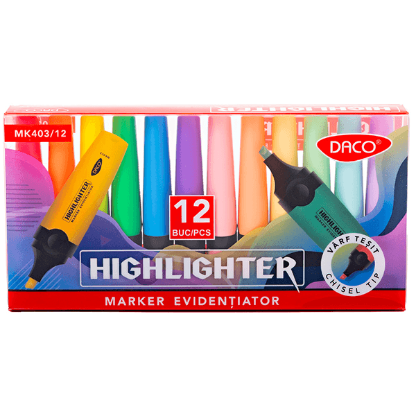Marker evidentiator Daco 12 culori/set cu 12 culori pastelate si neon.