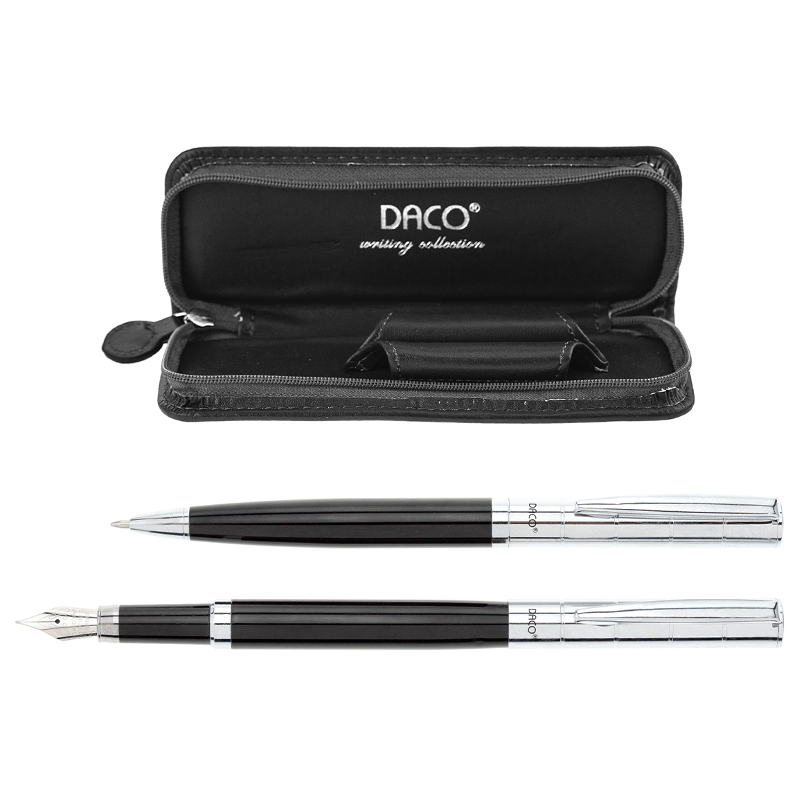 Set stilou cu patroane si pix metalic cu mina albastra Daco SE273