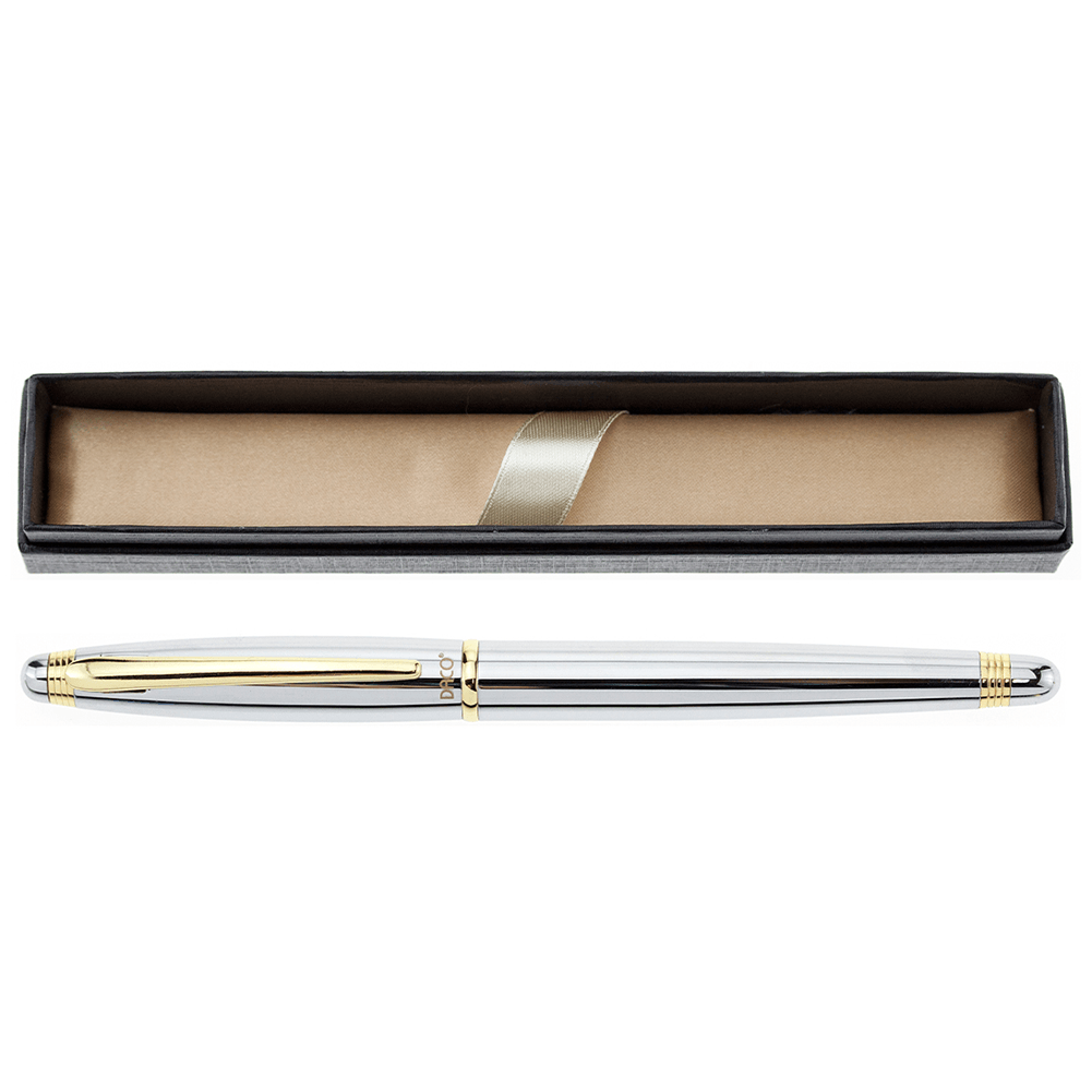 Stilou Daco metalic ST108 argintiu cu insertii aurii.