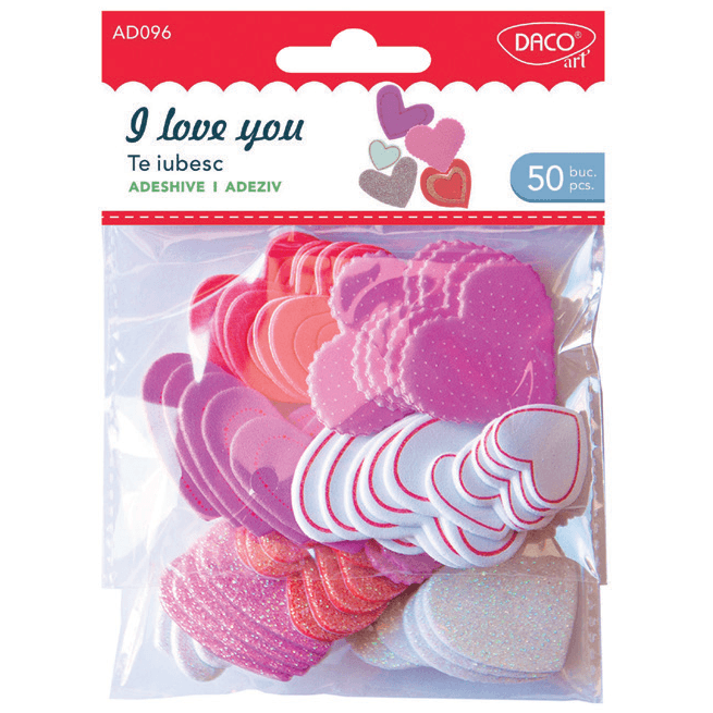 Set cu 2 pungi ce contin 50 de inimi printate sau glitter cu dimensiuni variabile