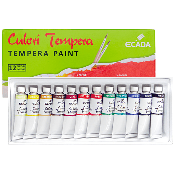 Acuarele tuburi tempera Ecada cu 12 culori , 6ml/culoare