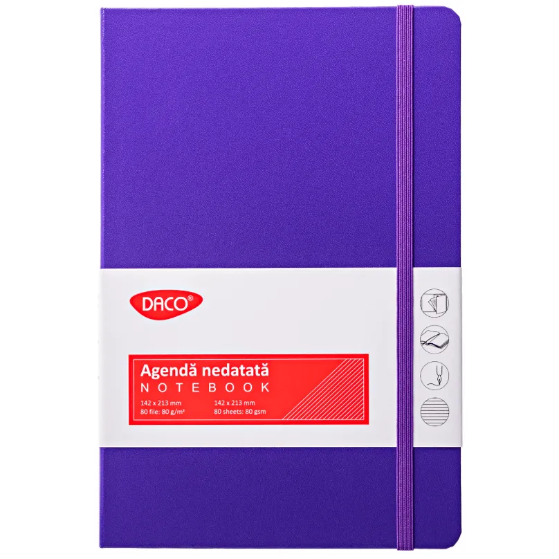 Agendă nedatată DACO AN527 Mov, format A5 (142 x 213 mm), cu 80 file din hârtie albă si colțuri rotunjite