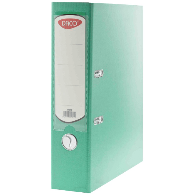 Biblioraft plastifiat 7.5 cm Daco turcoaz, colturi metalice, mecanism cu opritor