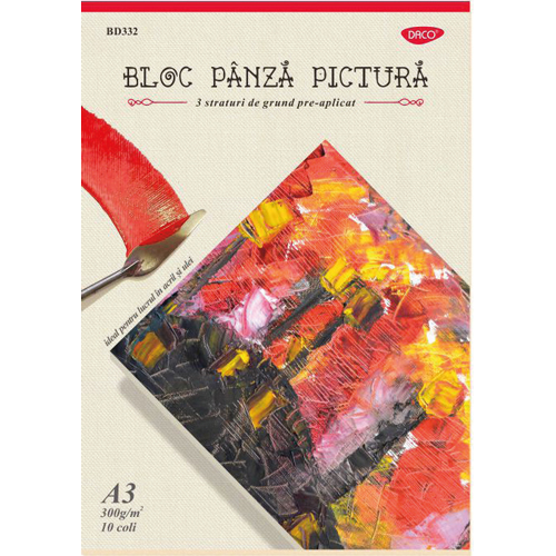 Blocul contine 10 coli de panza cu 3 straturi de grund pre-aplicat