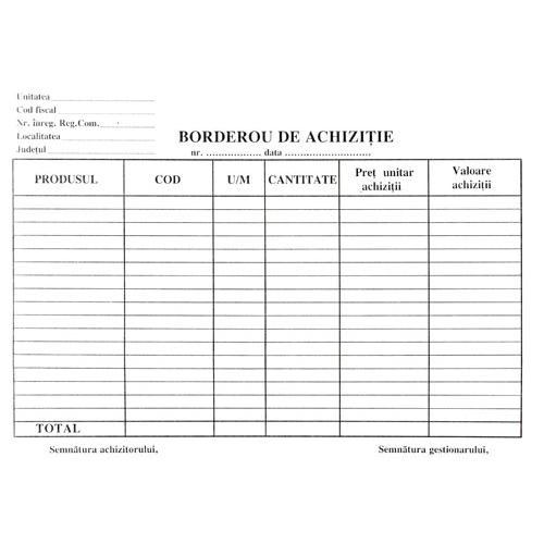 Borderou de achizitie A4