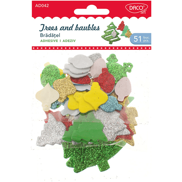 Setul contine 51 de braduti si globuri din spuma de diferite forme si culori
