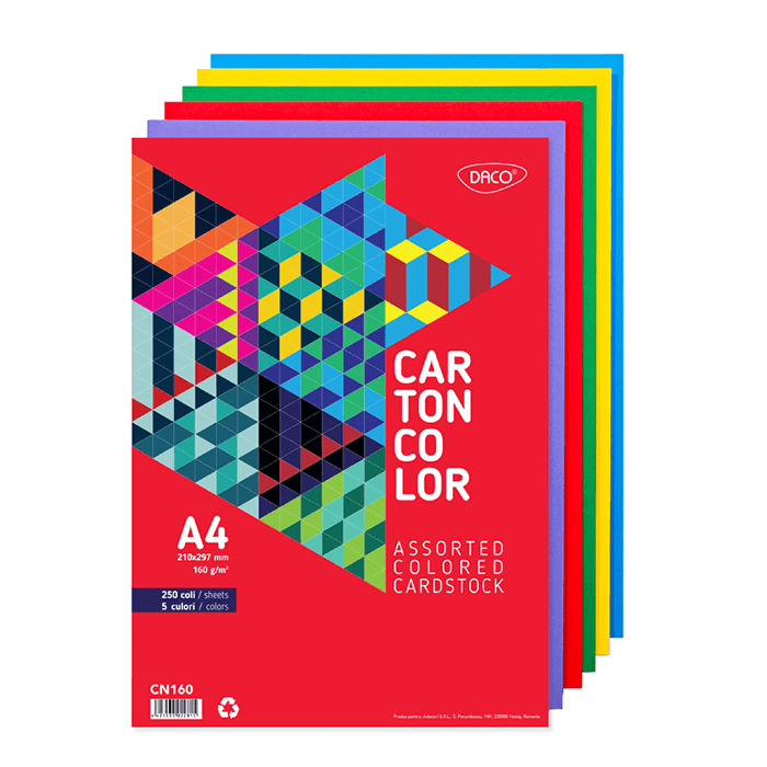 Carton colorat asortat A4 160g 5 culori 250 coli