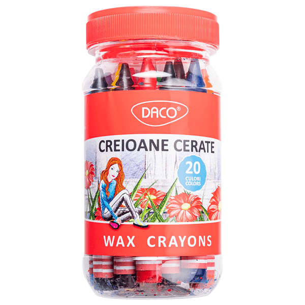 Creioane colorate cerate Daco cu 20 culori in borcan din plastic.