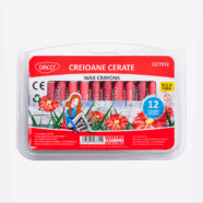 Creioane colorate cerate plastifiate Daco in set cu 12 culori , ascutitoare si radiera inclusa.