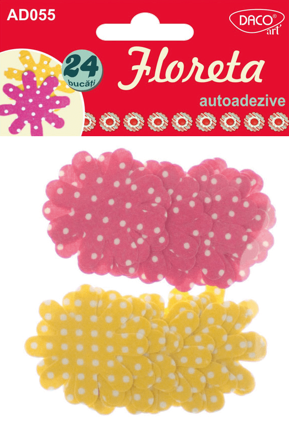 Floreta autoadeziv textil Daco, 24 bucati in set , dimensiune aprox 5 cm