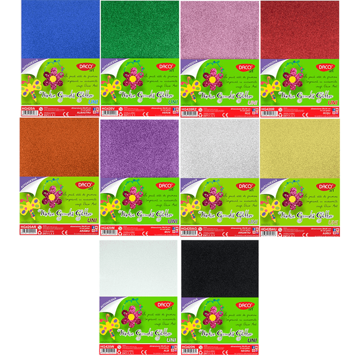 Hartie gumata glitter autoadeziva Uni DacoArt – diferite culori