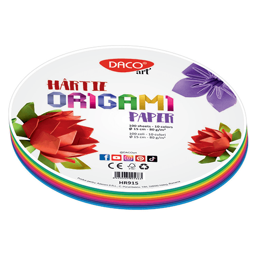 Hartie origami rotunda , diametru 15 cm, 10 culori, 100 coli, 80g/mp