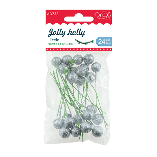 Ilicele argintii polistiren DACOart in set de 24 bucati