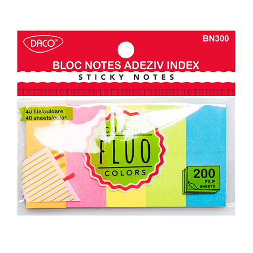 Index autoadeziv hartie Daco BN300, 5 culori, 200 file, 50mm x 20mm