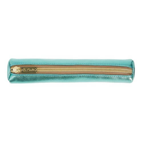 Penar etui rotund Herlitz Mini Turquoise din piele sintetica metalizata