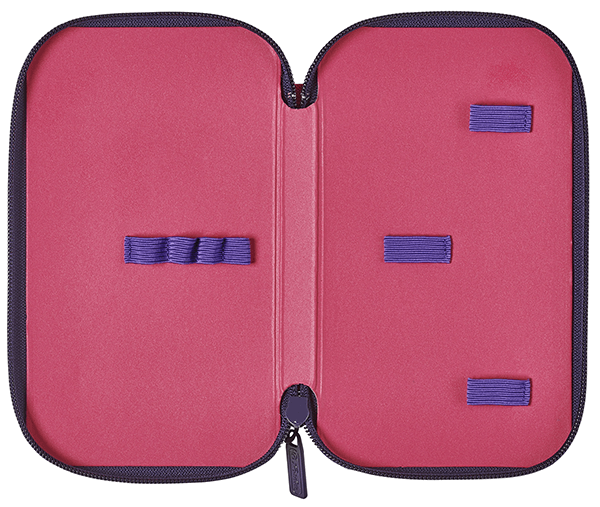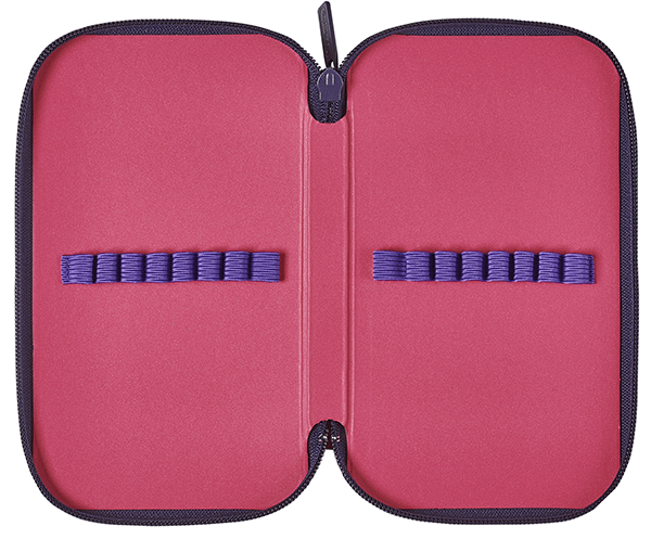 Penarul are 2 compartimente inchise cu fermoare avand 23 de pozitii pentru creioane, carioci si alte rechizite