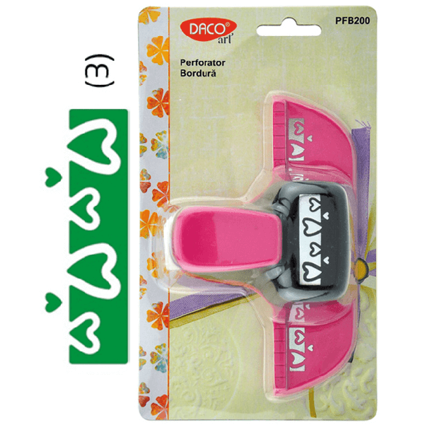 Perforator cu model bordura continua PFB200, model Inimi, perforare 4.6 x 1.1 cm