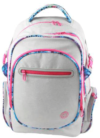 Compartiment secundar cu oganizator si breloc pentru chei, buzunar frontal, doua buzunare laterale cu elastic pentru sticla cu apa, bretele laterale pentru reglarea volumului.