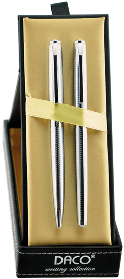 Set stilou si pix Daco SE222 argintiu, in cutie neagra cu interior satinat.